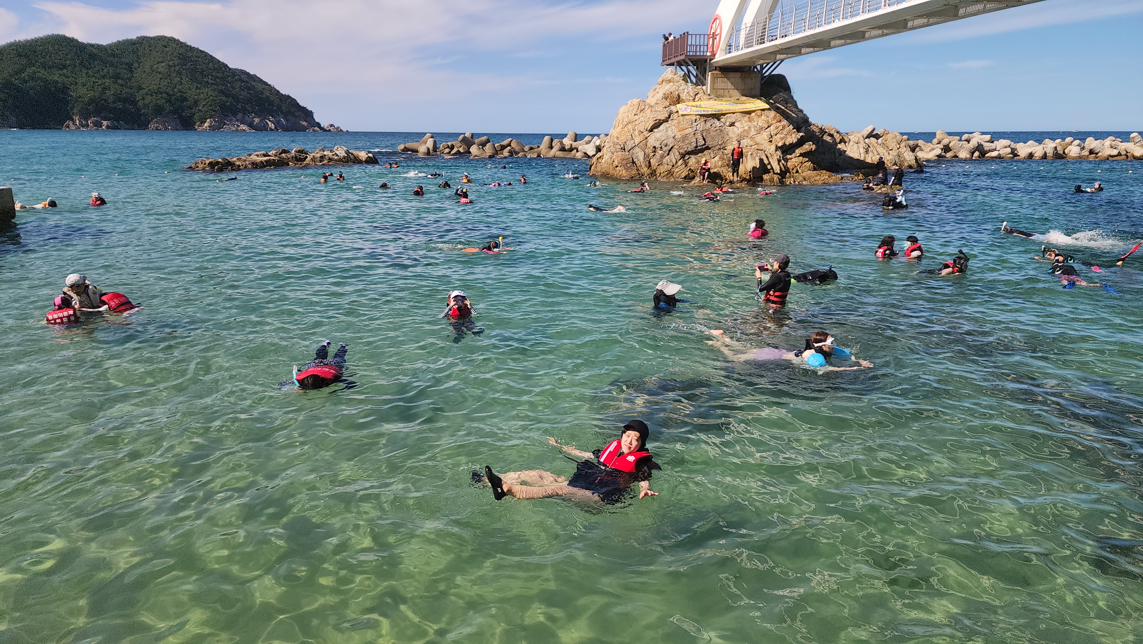 한국의 나폴리라고 불리는 정말 유명한 곳입니다. 유리처럼 투명한 에메랄드빛 바다, 전경이 한데 어우러진 모습은 정말 장관이죠. 스노클링, 바나나보트 등 다양한 액티비티 체험하기도 정말 좋아요.